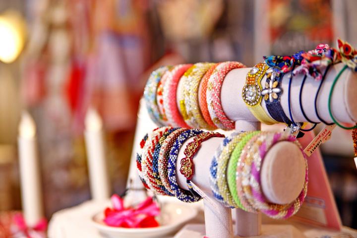 アメリカ人デザイナーがプロデュースする「リリー&ローラ」のブレスレット(各1944円)は、日本の精巧なガラスビーズを使い、ネパール人によってひとつひとつ手作りされています。同じデザインは2つとないので、いくつか購入してその日のファッションに合わせたコーディネートをするのも楽しいですね。