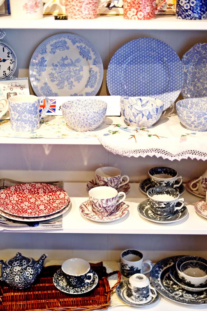 「バーレイ」は、全ての工程が手作業で仕上げられ、同じ柄でも商品ごとに異なる表情があることで人気のイギリスの陶磁器ブランド。カップ&ソーサー、プレート、ボウルなど、多彩な柄が一堂にそろうのは貴重なんだとか。来店のたびに買い集める人が多いというのも納得です。