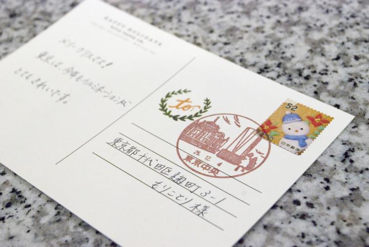 ホワイトツリーを鑑賞した後はそのままJPタワー1階にある東京中央郵便局に立ち寄って、旅の思い出を一枚のハガキに寄せてみるのはいかがでしょうか? クリスマスカードにメッセージを書き添え友人に送ったり、丸の内のライトアップを満喫した感動をそのままに自宅に送ってみるのもいいですね。 希望すれば、先ほど訪れた東京駅丸の内駅舎とJPタワーが描かれている、東京中央郵便局限定の消印( “風景印” )を押して送ることもできます。儚いイルミネーションの記憶を、思い出の風景とともに残す。きっと、いい記念になりますよ。 ○東京中央郵便局 [所] KITTE 1階アトリウム東京都千代田区丸の内2-7-2 [時間]9:00~21:00(土・日曜、祝日は~19:00) [休み]不定休
