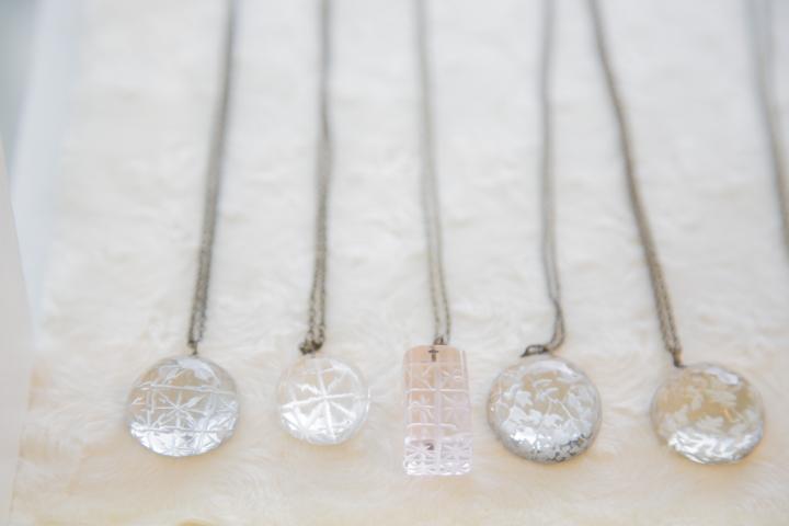 まるで雪の結晶のような金津沙矢香さん作のペンダント。7020円