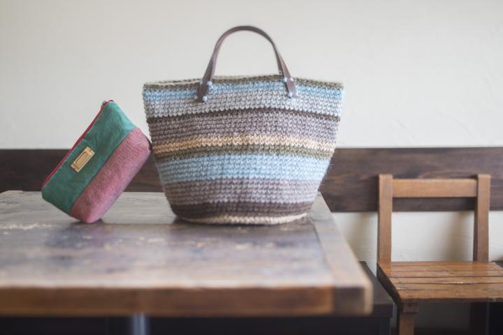 オーナーの友人が手作りした「布のポーチ」と「毛糸のバッグ」(4500円)