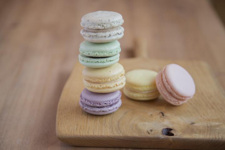 ミルクティーやカシス、あんずなどカラフルな「マカロン」(1個170円)