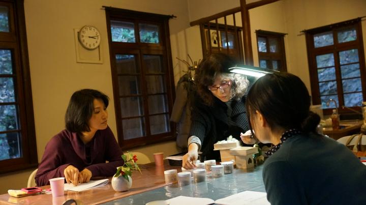 繭玉が完成したあとは、屠蘇散づくり。歌川国芳「屠蘇機嫌三人生酔」には、ほろ酔いの3人娘と繭玉が描かれていますが、まさに大正月に忙しく働いた女たちの正月ともいわれた小正月にふさわしい浮世絵です。西島さんは、今度は少しずつケースに入った陳皮や花椒、百合、大茴香(ダイウイキョウ/スターアニス)、山査子(サンザシ)、甘草(カンゾウ)などの生薬・薬草を並べました。材料はすべてオーガニック。漢方薬局から購入しています。 お屠蘇といえば、屠蘇酒が用意できないときは日本酒でもいいかな、という感覚だったのですが、本来の屠蘇を飲む意味、屠蘇の語源のひとつ「邪気を屠(ほふ)り、魂を蘇らせる」を考えると、薬酒としていただいたほうが良さそうです。生薬や薬草を配合した屠蘇散をみりんや日本酒に一晩浸して作るお屠蘇ですが、どうやら、屠蘇を飲む習慣が民間に広まった江戸時代には、使い方を誤って中毒者を出した史実もあるのだとか。ここでは、西島さんが漢方上級スタイリスト、薬膳アドバイザーであることから、安全な範囲で調合を行っているので問題なし。飲み方まで指導してもらいました。 「古き良きものに目を向けて残していくことをしていきたいのです」というのは、たからの庭主宰、NPO法人Takara鎌倉の代表、島津克代子さん。20年前に東京から鎌倉に移住した際に、そこにノウハウがないために簡単に壊されてしまう古い建物があることを知りました。自身は街のあちこちに昭和の残り香のある鎌倉に惹かれて引っ越してきたのに、一方では古いものを持っているだけで手をかけないで恥ずかしいという大家さんが多く、せっかくだから維持して有効活用しましょうと仲介役になることを決め、宅建などの資格も取得しました。そして、古民家と人をつなぐ活動をしているうちに「鎌倉らしさ」を発信することをしてみたいと思い始めたそうです。そんなときに、この物件に出合いました。