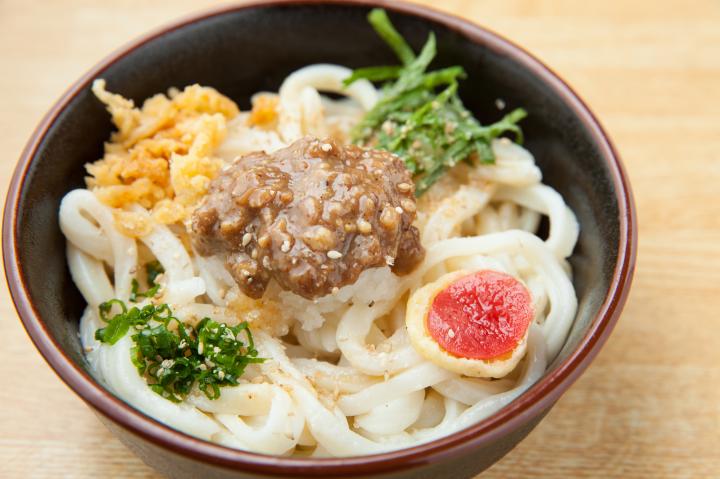 「ひしおぶっかけうどん」(500円)。この味を求めて、わざわざ船に乗ってやってくる人もいるとか