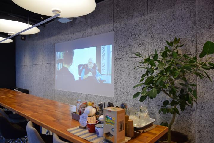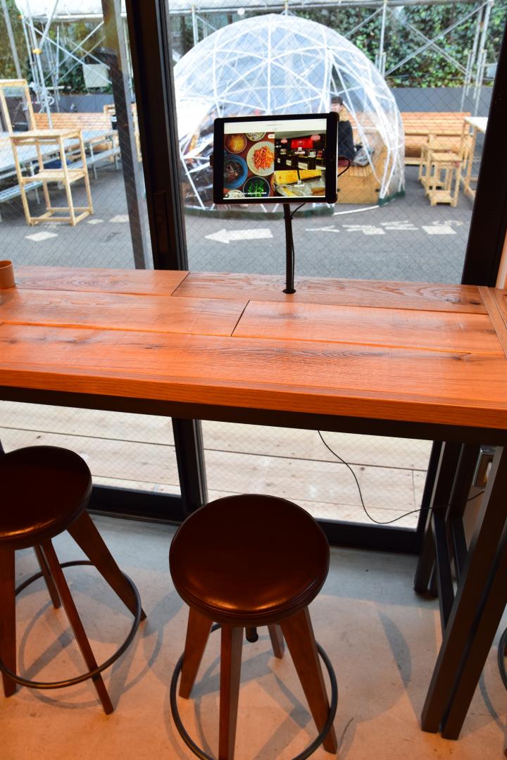 カウンターには4台のiPadを設置。フリーWi-Fiが完備され電源も充実しているので、仕事での活用はもちろん、散歩やお買い物の途中、待ち合わせに立ち寄って、情報収集してからどこかへ出かけるのにも便利です。 カフェ中央のスクリーンには、シーズンごとにおすすめの映画やWebサイトなどが映し出されています。このスクリーンは、デジタルタッチペンを使えば大型のタッチスクリーンにもなります。イベントなどで利用する際には、スクリーンを使った新たな企画が楽しめるかもしれません。