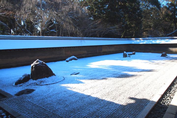 白砂をさらに白く彩る、雪化粧の「龍安寺」石庭