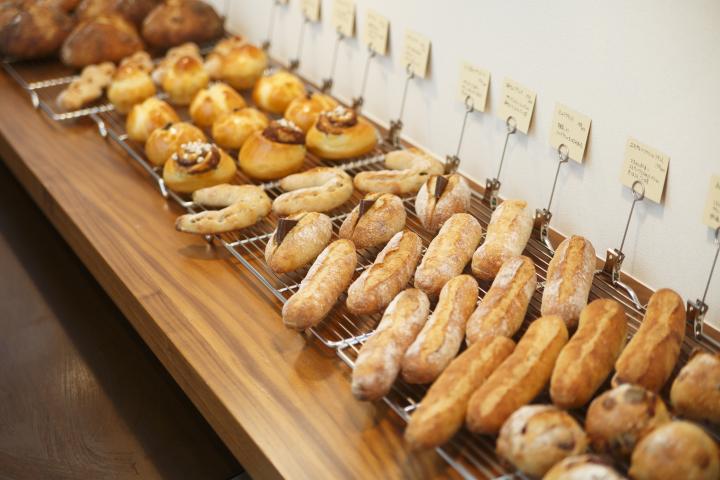 「パリに食べ歩きに行くほどハード系パンが好き」と話すのは、神戸のフランス料理・製菓・製パン学校「ル・コルドン・ブルー」で学んだ夫人。素朴ながら味わい深い、ハード系パンがたくさん並ぶ理由の一つです。 人気の「バゲット」(250円)は、フランス産と北米産をブレンドした石臼挽きの小麦粉を使い、噛むほどに小麦の旨みや甘みを感じます。ほかにも、しっとりとした生地がクセになる、自家製天然酵母でシンプルに焼き上げた「ブール」(300円)、ブリオッシュ生地にたっぷりのシナモンで大人好みに仕上げた「シナモンロール」(230円)もおすすめです。