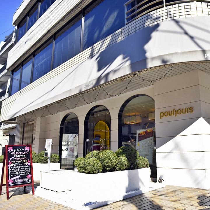東京メトロの表参道駅から青山通りを西へ進み、路地を少し入ったところに「pourjours(プールジュール)」はあります。優雅な白い建物とビビッドカラーを差し色に使った内装、そしてカラフルかつシックなパッケージのデザインは、世界的なデザイナー、クラウディオ・コルッチ氏によるものです。