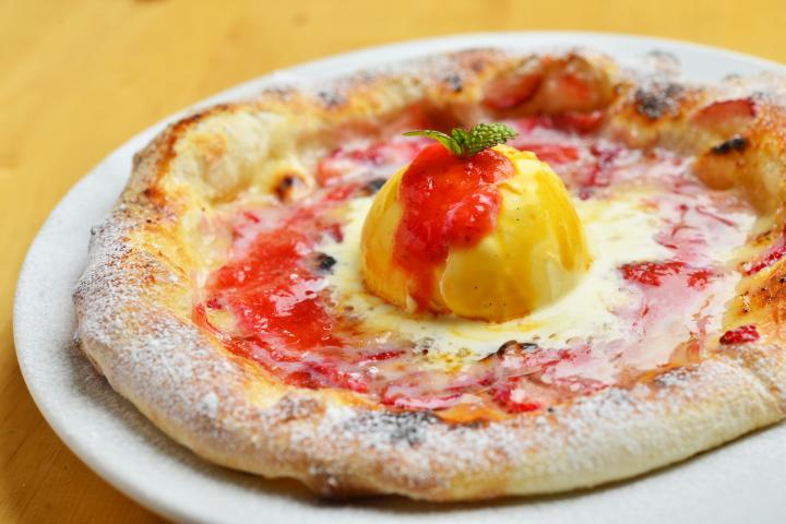 「ピッツェリア・デルソル」で、いちごのデザートピッツァを味わう