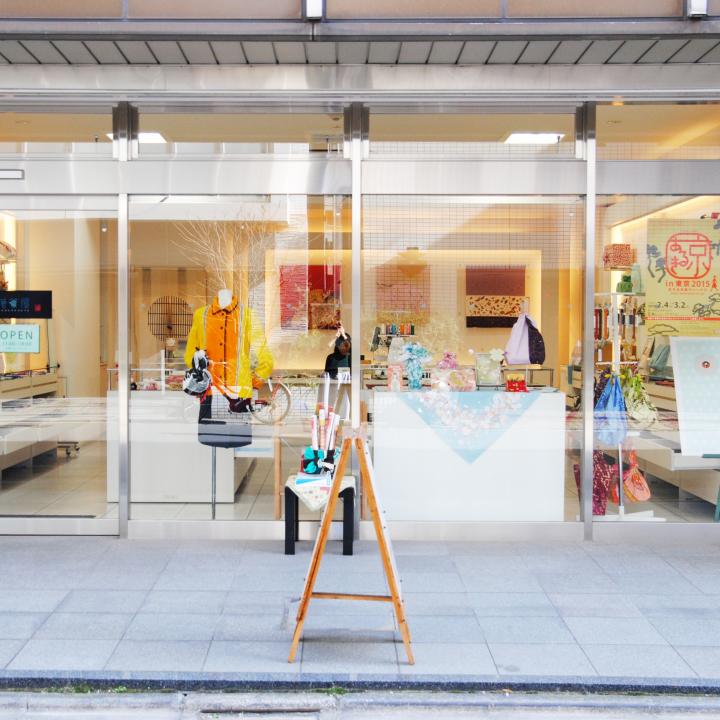 地下鉄東京メトロ日比谷線と都営浅草線の人形町駅A5出口から徒歩ですぐ。ビルが建ち並ぶ一角に「風呂敷専門店・東京唐草屋」はあります。 こちらは京都の老舗風呂敷店が営むお店。店内へ入ると、たくさんの風呂敷が美しくディスプレイされています。民芸運動に関わった人間国宝の芹沢銈介氏や、作家で着物デザイナーでもあった宇野千代氏のシリーズ、「ふろしきデザインコンペ」(日本風呂敷協会主催)で受賞した大学生の作品を商品化したものまで、さまざまな作品が置かれています。また、伝統的な和柄だけでなく北欧風のポップなデザインのものや洗濯も可能な水を弾く撥水生地のものなど、新しさが感じられる商品も、数多く並んでいます。
