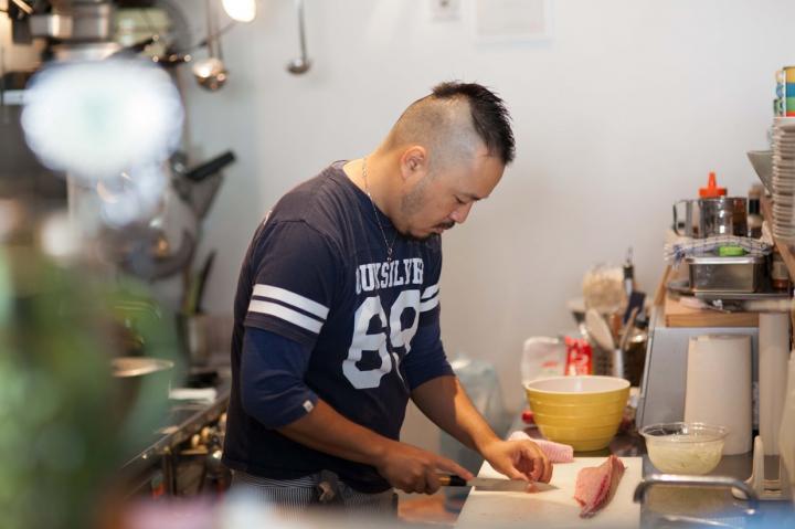 「日本にはおいしい魚料理がたくさんありますが、魚を使ったファストフードは意外と少ないですよね。そこで、新鮮な魚をカジュアルに楽しんでもらいたいと、フィッシュ&チップスのお店をオープンしたんです」と話すのは、笑顔でテキパキと接客をこなす菜穂子さん。 看板メニューのフィッシュ&チップスは「スタンダード」と「スペシャル」の2種類あり、「スタンダード」はカレイなど、クセのない淡泊な味わいの白身魚を使っています。「スペシャル」は季節によって変わり、春から夏はハワイで高級魚とされるマヒマヒ(シイラ)、秋から冬は秋シャケ、タラなどが定番ですが、時にはエイやサメなど、市場に流通しない珍しい魚がメニューに載ることもあるそうですよ。 「エイはコラーゲンが多いのでフワっとした食感。サメは淡泊な味わいです。需要が少ない魚は、網にかかってもほとんどが捨てられてしまいますが、おいしい魚も多いんです。限りある資源を無駄にしないためにも、魚の生態を説明しつつお出ししています」と、キッチン担当の伸介さんが手際良く魚をさばきながら教えてくれました。