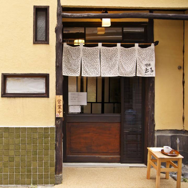 阪急河原町駅2番出口から南へ5分ほど歩いたところに、「喫茶 上る」はあります。古民家のよさを生かしつつ、ほぼすべてをセルフリノベーションした、ほっこりと落ち着きのある空間が魅力です。窓際の席は、すぐ目の前に高瀬川が流れていて、鴨や鷺などの野鳥を見かけることもあるほど、のどかな眺めを楽しむことができます。