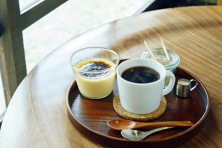こちらのおすすめは、コロンビア産など3種の有機豆を自家焙煎する「コーヒー」(500円)。オーダー後に豆を挽いてペーパードリップした、ブラックでもすっきりといただける1杯です。濃厚なバニラが香る「パリパリキャラメリゼのプリン」(400円)といった手作りスイーツが人気で、夕方からのお茶の時間を盛り上げます。