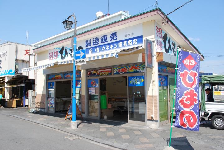 沼津港周辺に数ある干物店の中でも、一度食べたら忘れられないとリピーターを増やし続けているのが「カネキン 露長商店」です。 この店の干物の最大の特徴は「朝づくり」という製法。その名のとおり、朝開いた魚をさっと干して、その日のうちに店頭に並べます。こうして作られた干物は、何日も干したり冷凍させたりしたものと比べると、身がしっとりふわふわ。絶妙な塩加減が素材の旨みを引き立てます。 沼津名産のあじはもちろん、金目鯛やかます、さばやあじのみりん干しも人気です。午後には品薄になってしまうので、購入はお早めに。