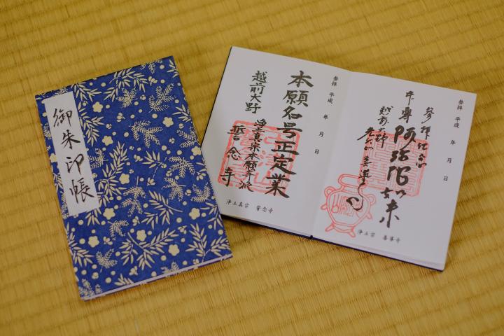 右側の御朱印帳(1000円)が大野市観光協会で購入できる