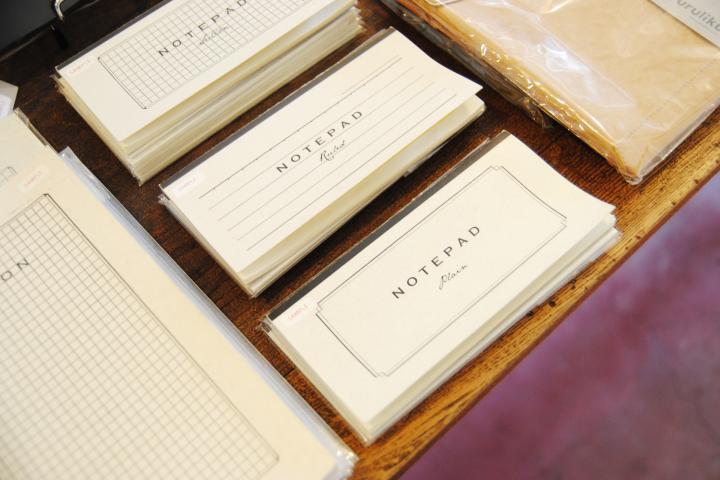 JR御茶ノ水駅の御茶ノ水橋口から徒歩5分。神田川沿いにある、レンガ色の建物の地下に「ユルリク」はあります。デザイナーの池上幸志さんとオオネダキヌエさんのアトリエを開放し、毎週金曜日と土曜日だけ、オリジナルアイテムを販売する店舗として営業しています。 ふたりが手がけるのは、文房具や文房具をモチーフにしたアイテムです。「顔が見えるものづくりをしたい」と、ものづくりで有名な台東区を中心とした縫製、金型、活版印刷などの職人たちとともに作っています。 台東区・浅草橋の老舗文具メーカー「ツバメノート」とコラボして誕生した「NOTEPAD/活版印刷一筆箋」(432円)の罫線も、活版印刷の職人に依頼して作ってもらっているので、レトロさが感じられます。なめらかにペンが走るクリーム色のフールス紙を使用していて、書き心地も抜群です。 作品作りのテーマは”暮らしの中にあるユーモア”。どのアイテムにも驚きがあり、持っているとコミュニケーションのきっかけになって会話が弾みそうな、おもしろいものがたくさんそろっています。