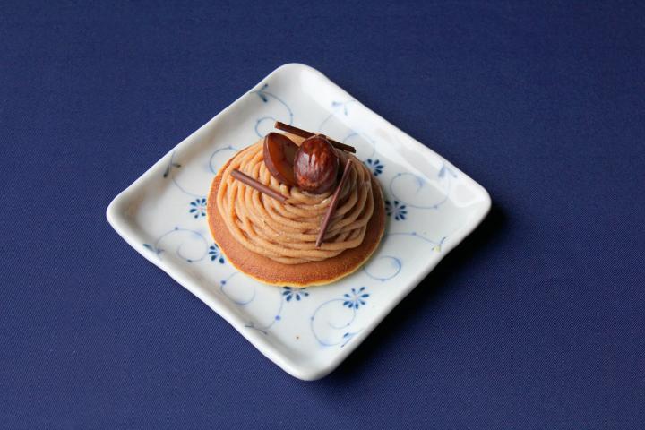 お店のいち押しは、「どらやきスイーツ」です。子どもの手のひらよりも少し大きいくらいの、しっとり焼き上げられたどらやきに、モンブランやレアチーズなどのホテルメイドのスイーツが乗せられています。 いちばんの人気は「モンブラン」(350円)。ラム酒をきかせたマロンクリームが、どらやきの皮の風味とよく合います。ほかに抹茶クリームに小豆と栗がトッピングされた「抹茶クリーム×あずき×栗」(350円)も京都らしくおすすめです。イチゴやいちじくなど、季節の素材を使ったものが登場することもあり、クリームを二層にするなど、隠れたところまでシェフのこだわりが光ります。 さらに、おもしろいのは「どらやきバーガー」。スモークサーモンやコールローストビーフなどがどらやきの上に乗せられています。生地も甘さを控えたタイプを使用した和風パンケーキのような味わいで、小腹が空いたときなどにぴったりです。