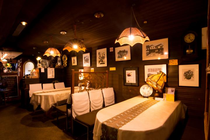 和洋アンティークのうつわや地元作家の絵画が展示されるギャラリーのような店内