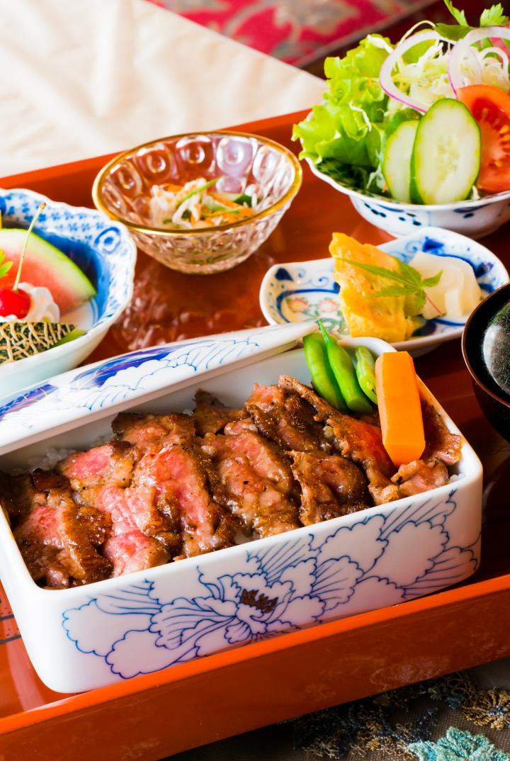 サラダや香の物、デザートなどが付く「伊万里牛ステーキ重」(2480円)