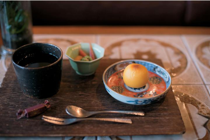 飛騨高山の古民家の建築材を使ったカフェ。広々としたテラスで、地元の素材にこだわった焼き菓子や食事が楽しめます。 球形のコロンとしたフォルムがキュートな安納芋のスイートポテトは、控えめで優しい甘さが特徴。お口直しの漬け物もおいしいですよ。