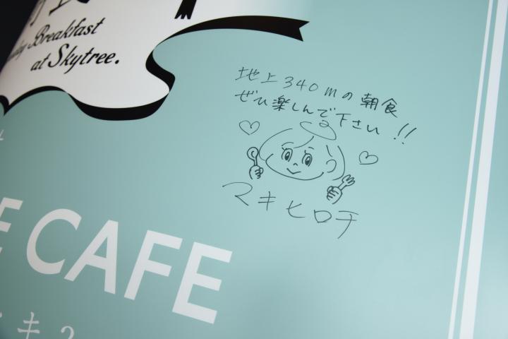 朝から元気で笑顔になれるメニューは、作者のマキヒロチさんによる監修。食材や味へのこだわりはもちろん、キュートなルックスなので、記念写真も忘れずに。 マキさんのおすすめは、朝8〜10時限定でいただけるメニュー「アールグレイ香るスカイツリーグラノーラプレート 〜水切りヨーグルトとフルーツ添え〜」。“アールグレイの香りのするグラノーラと、もっちり食感のヨーグルトの組み合わせ”で、ボリューミーで腹持ちがよいのにヘルシーという、一日を元気にスタートできる朝食となっています。まずはグラノーラをそのまま食べて紅茶の香りを楽しんで、その後はトッピングのベリーを加えてと、すこしずつ味の変化を楽しめるのもうれしいポイントです。
