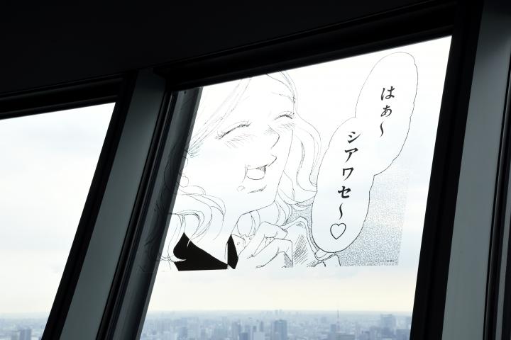 店内の窓ガラスには、漫画にでてくるお馴染みのシーンが