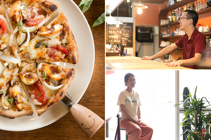 こちらのお店でぜひ味わいたいのが、鹿野産の素材たっぷりの「味噌チーズのピザ」。焼くことで甘みを増した旬の野菜に、パリッとした生地、タバスコに使う唐辛子まで、作り手の顔がわかる相手から仕入れることにこだわっています。 味のポイントは、町内にある老舗味噌店の女将特製味噌を、甘酒で伸ばしたまろやかなソース。味噌の風味を活かすために、あえてオリーブオイルの代わりにごま油を組み合わせているそう。正統派イタリアンのピザとは少し違っても、鹿野の素材を使ってどう美味しく作るかを考えるという店主の成瀬さん。ここでしか食べられない一皿に出会えます。