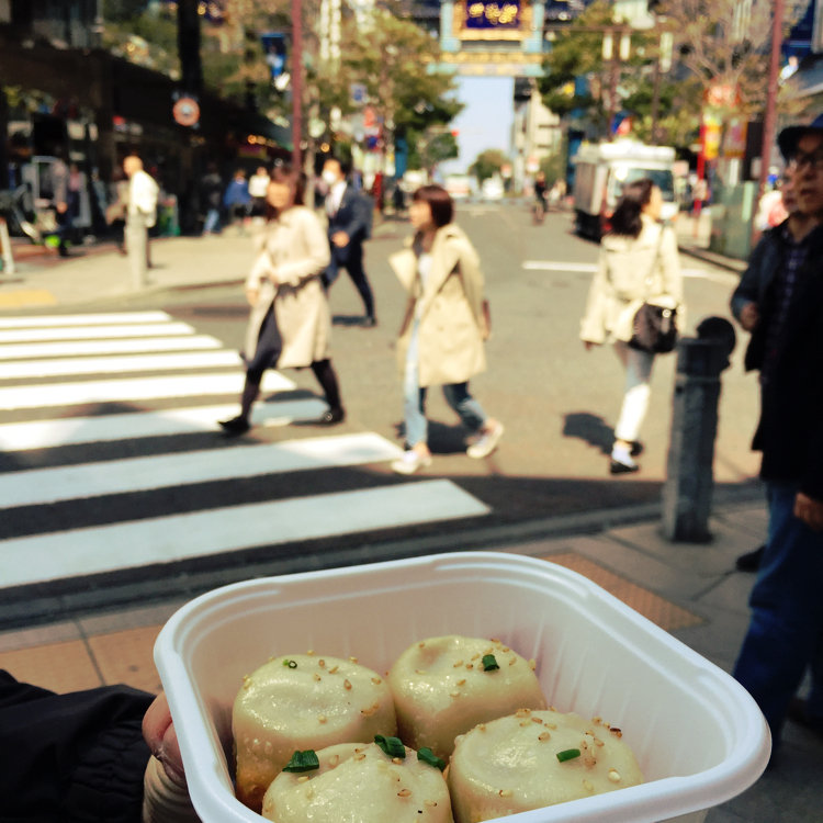 神奈川県 横浜中華街にて。王府井の焼き小籠包。美味し〜い😄もちもち。イートインは、あまり人気が無いのか空いてました。みんなテイクアウト派なんでしょうか。テイクアウトは行列。