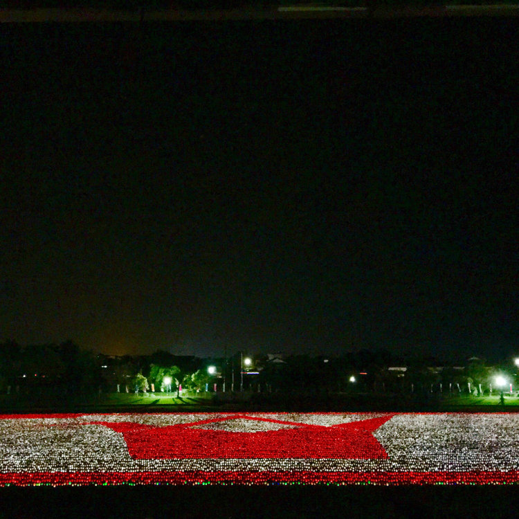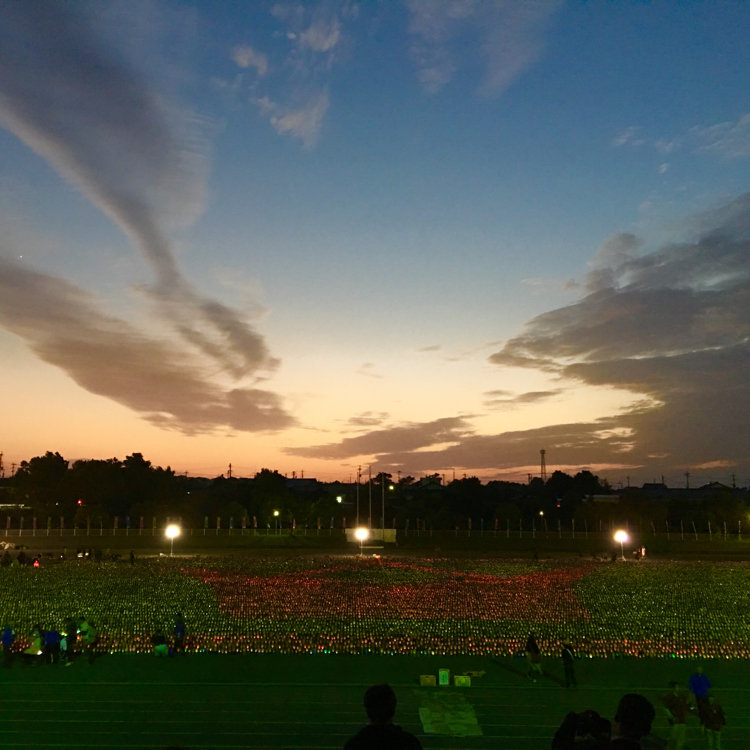 【マチ・テラス情報】 陽が沈み、赤い折り鶴が浮かんできました‼️ #いずみマチテラス #鹿児島県出水市 #出水市 #竹灯籠 #マチテラス #わたしの街