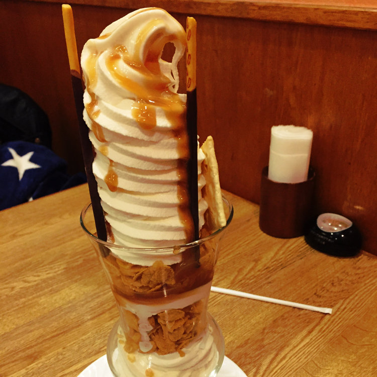 木更津駅近くにあるモンシェリー ビッグパフェのキャラメル味