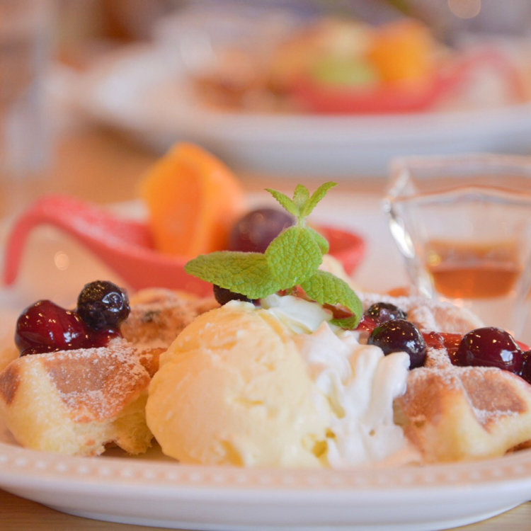 Queen’s Cafe。 薩摩藩英国留学生記念館の中にあります。写真はベルギーワッフル。美味しかったぁ😋