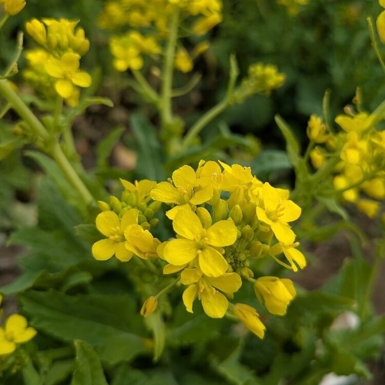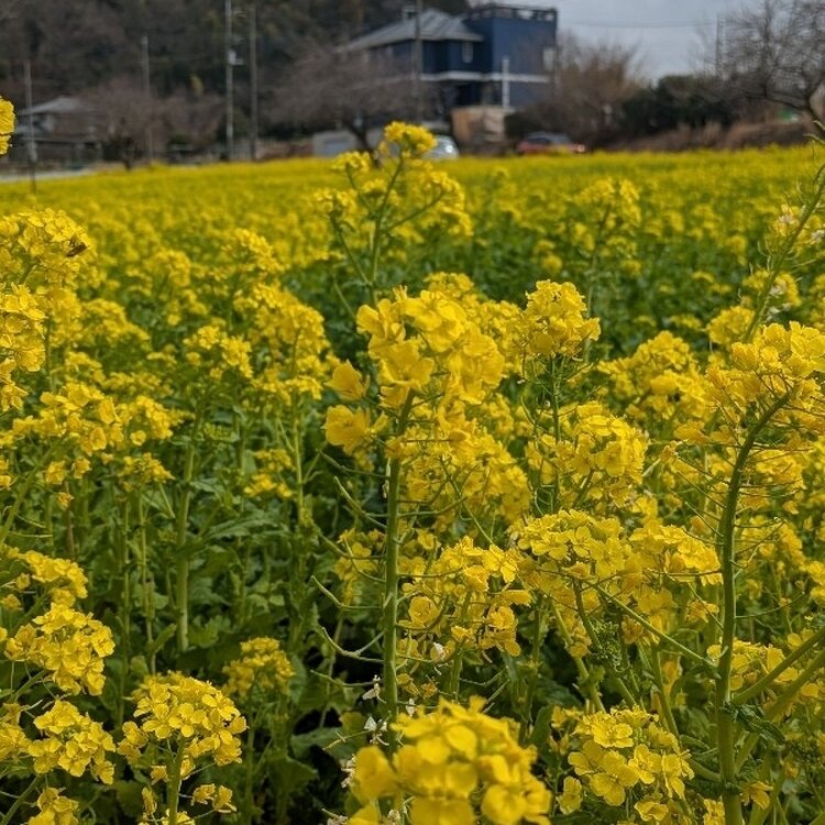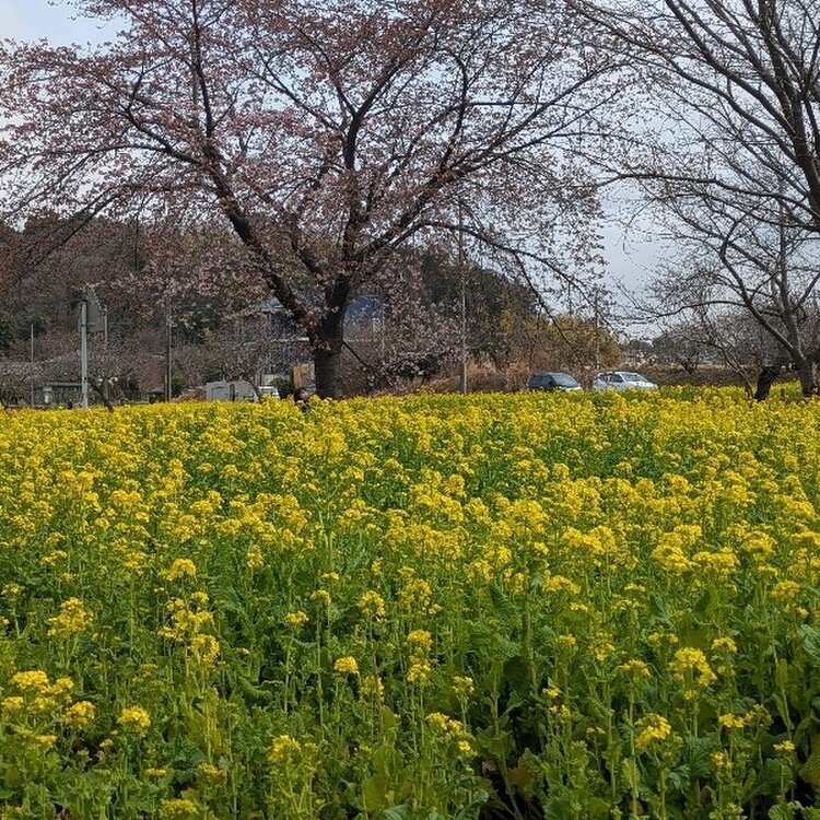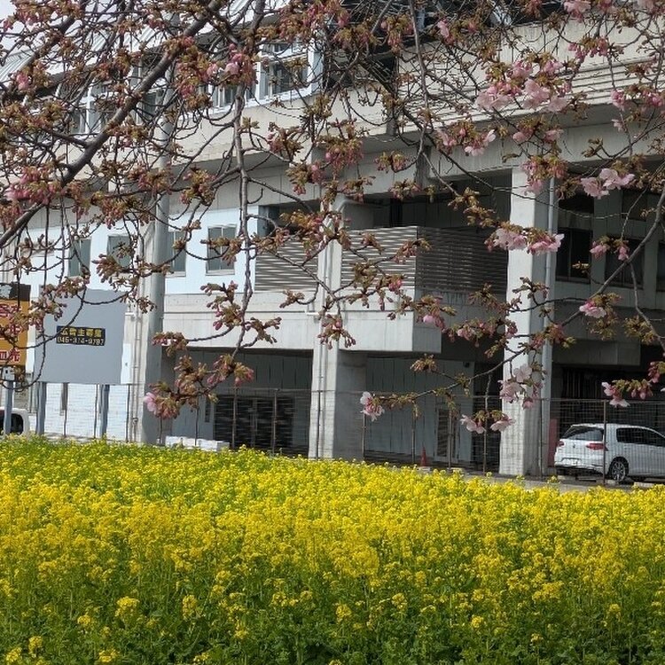 川和駅そばの菜の花畑 桜の蕾もほころびはじめました