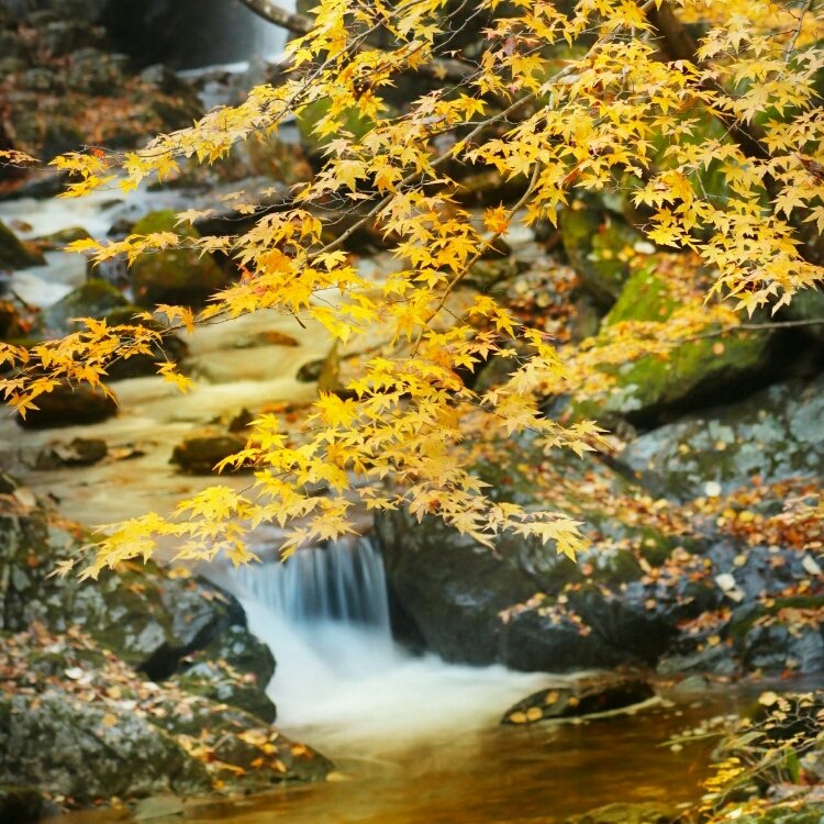 #色づく染まる紅葉と色づく渓谷#