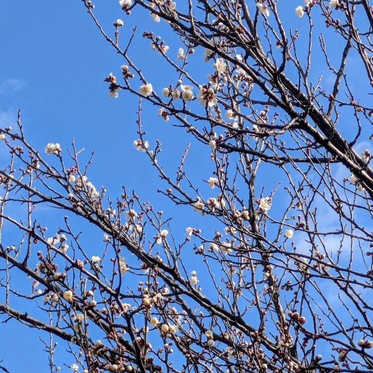 鶴見川土手 テクテク👣さんぽ 鴨居は白梅が多いです