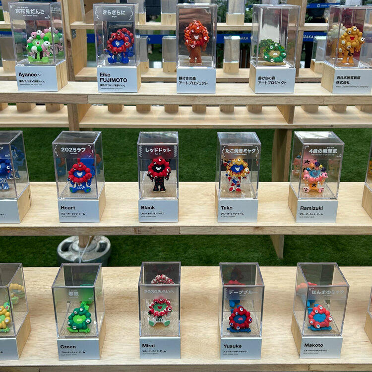 万博公式キャラクター「ミャクミャク」のフィギュアにパビリオンスタッフをはじめとした万博関係者がペイントし、カラフルなアレンジやユニークな表現を詰め込んだオリジナル作品として展示する企画。