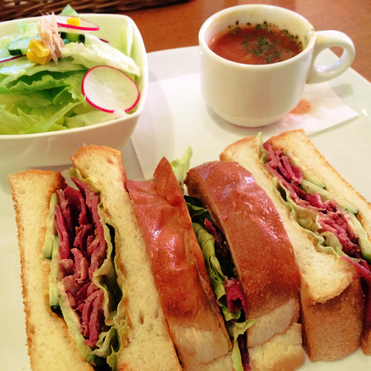 パストラミビーフのサンドイッチ❤️ メニューいろいろある中から、お肉が食べたかった(^O^) コーヒーもすごくこだわりのあるお店で、おいしいです☺️