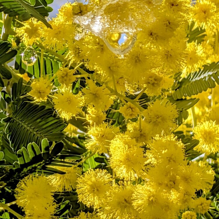 ミモザの涙 さよなら冬、こんにちは春。 ​雪が溶けて、ミモザに涙がこぼれた。 それはきっと、春が来たのを喜んでいる証拠。 ​#mimosa #雪解け水 #水滴 #花のある風景 #jun_flat
