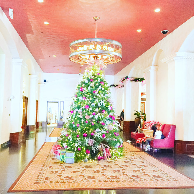 ロイヤルハワイアンホテル❗️ エントランスのど真ん中に大きなツリー‼️ 理想的なツリーです。 キラキラ輝くツリーにみんな集まります。