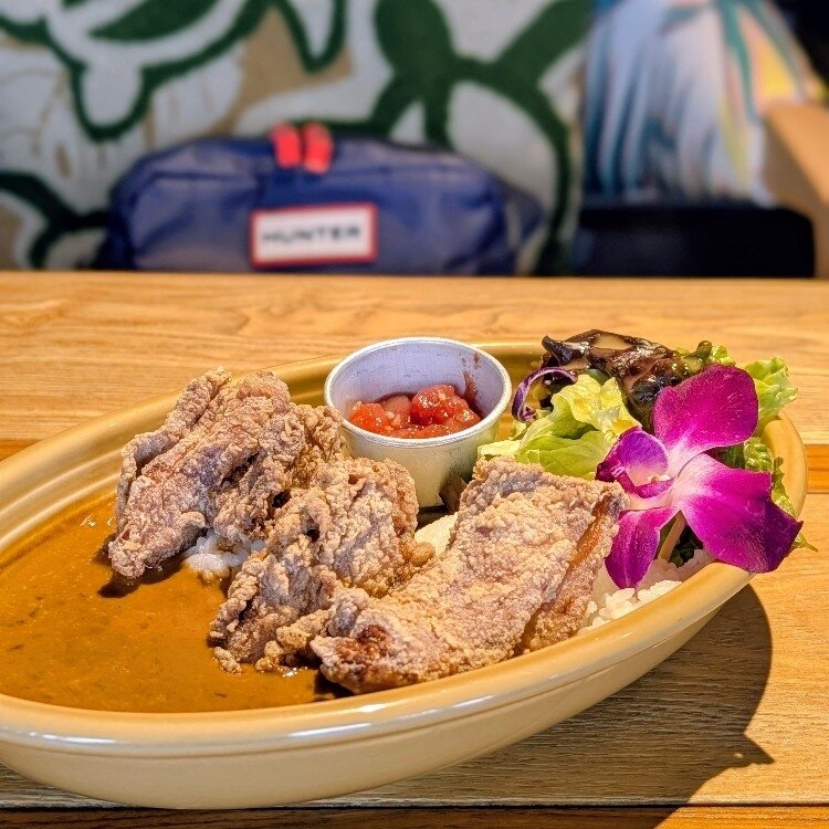 モチコチキンカレー🍛 雪で寒いから気持ちだけひHAWAII🌺 日曜日のコナズ珈琲はいつも混んでるけど、今日はさすがにパーキングに空きがあった😀 #モチコチキンカレー #コナズ珈琲 #jun_flat