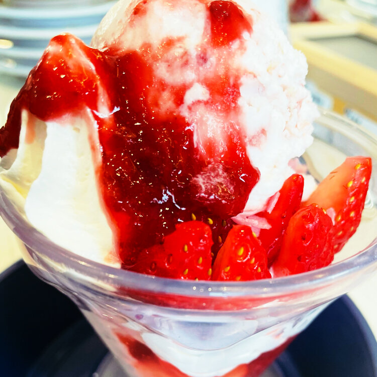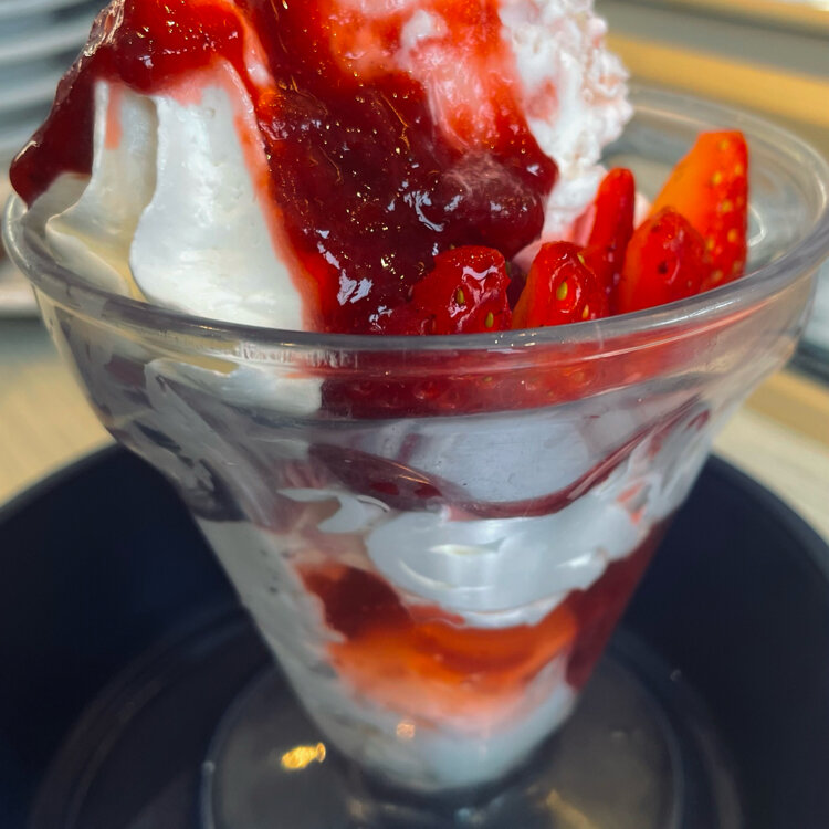 ストロベリー🍓パフェを頼みました❣️ 勿論、大好きな雲丹とかを食べましたが最後に長女と相談してパフェを注文❣️ いちご🍓のパフェにしました♪ ビックリ🫢‼️ 争奪戦❣️ みんなで、5分以内でした笑笑🤣 ご馳走様でした😋 #開運旅 #ことりっぷと一緒 #2026 #苺パフェ