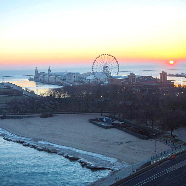 初日の出を見るため、シカゴで唯一ミシガン湖に面するWホテルに年末年始にかけて宿泊しました。