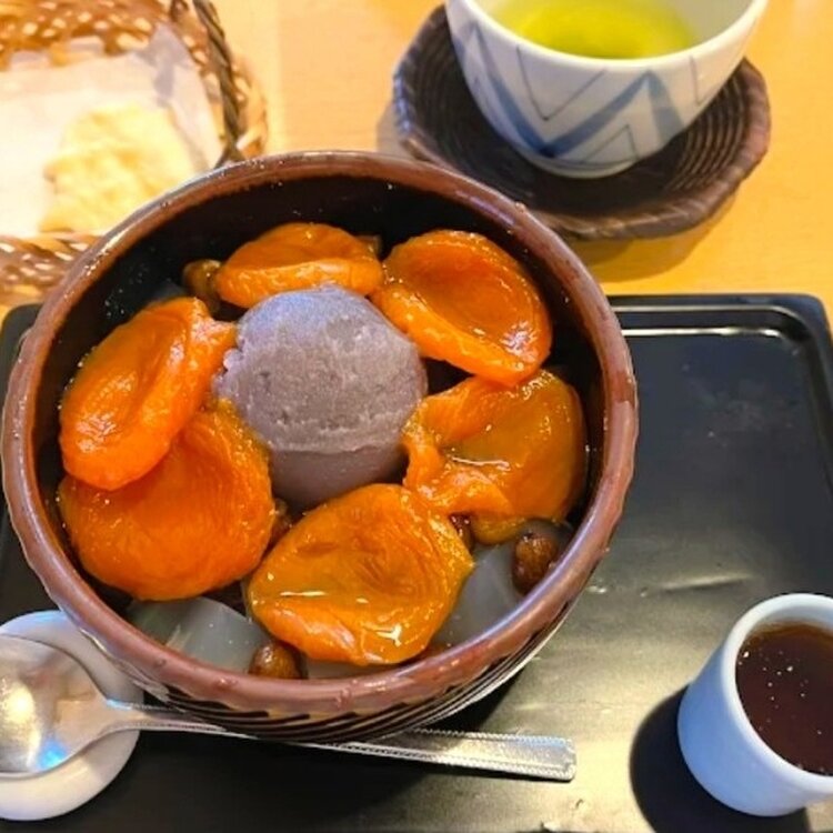 久々の暖かな日差しの日の     和甘処「紀の善」さん🍓🫘 この夏神楽坂の人気和甘味処紀の善さんが復活✨ スイーツ好きには大きなニュース になりました💗 秋と先日二回お邪魔して、楽しんだメニュー達、やっぱり美味しい〜😍💕 店内も地下階もでき、お洒落さんに復活で、連日大盛況です! この日は13:30過ぎで、まさかの待ち人たったの三人✨ 友人と興奮♫ 私は苺の餡蜜🍓🫘💗 友人は杏の餡蜜🟠🫘💛 もう一つ迷いに迷って、こし餡が最近のマイブームなので、粟ぜんざいと、温と冷をいただきました。 紀の善さんは、寒天自体が美味しくて、最初は蜜無しで十分なんです♪ そしていつものお煎餅、ブタさんの形は、トントン拍子に上手く行く✨🐖の意味で、嬉しくなります。 熱々の粟ぜんざいも最高でした。 リニューアル直後に行った時は、大人気の代表する、抹茶ババロアを💚 変わらぬ味が嬉しくなりました。 かつてトヨエツのドラマで、人気💥、テイクアウトでも楽しめます。 入り口には、京都のお店で良く見かける、神楽坂踊りと団扇がディスプレイ、内装も可愛い展示もあり、これからも通うことになりそうです🥰💓 #紀の善復活祭 #嬉しい #苺の餡蜜 #杏の餡蜜 #抹茶ババロア #懐かしの味 #粟ぜんざい #熱々 #内装もお洒落さんに #mg神楽坂散歩 #開運旅 #mgスイーツ