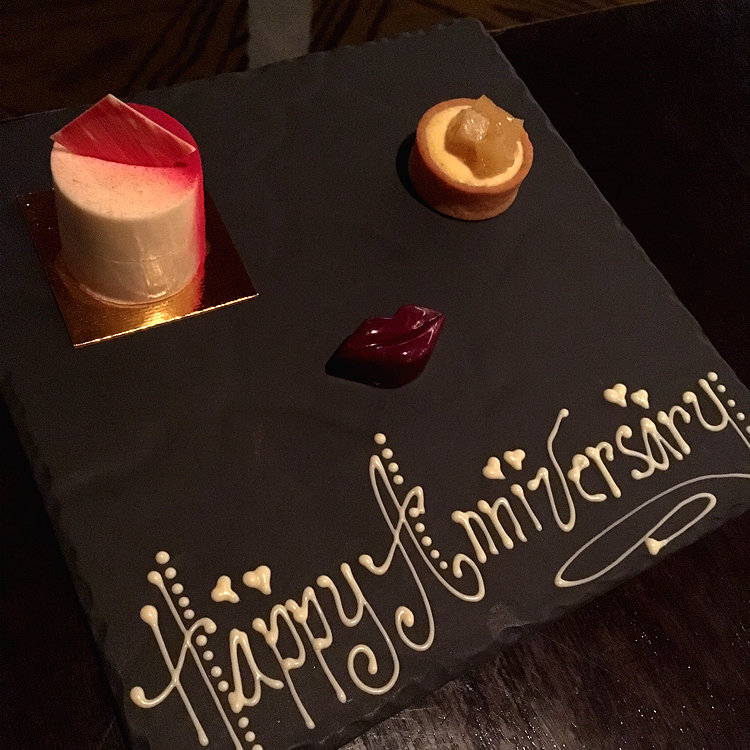 最後のデザートは、open tableという予約サイトでメッセージのお願いをしておいたので、お店の方が事前に用意してくださいました。アートデコレーションとスイーツのロボットみたいな顔がかわいい❤️一般の方はロボットみたいなスイーツワゴンが目の前に来て、いろいろ選べるようです。(ワゴンから選んでみたかったのでちょっと羨ましいですが) お店セレクションのスイーツはどれも完璧。特にチョコレートがおいしかったです。また食べたい〜❤️