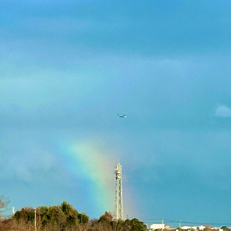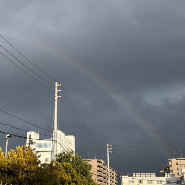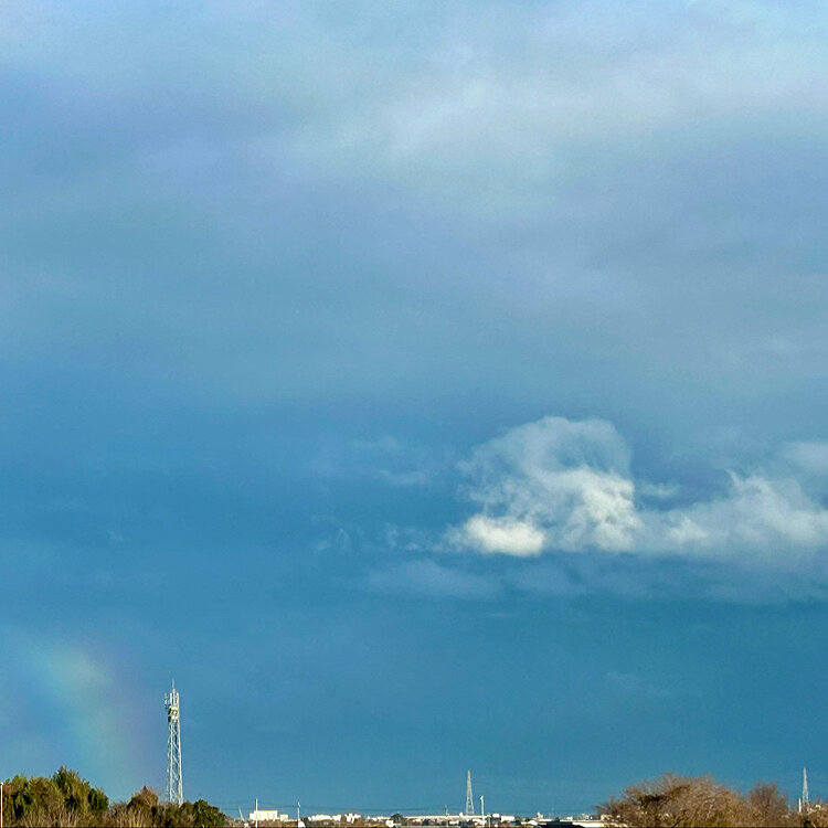 「虹がでとる🌈」とLINEが来たので庭に出てみました。さっきまで降っていた雨は止み、外が明るくなったなぁと思ったら‥✨家から30分離れている場所でかかった虹と同じかな?太くて丸くは見えなかったけど七色見えて綺麗でした🤩写真を撮ったのを見返してたら不思議な雲が☁️ん?犬🐕?笑ってる?(笑)自然て不思議ですね🌈久しぶりに虹を見ることができて幸せな日になりました✨ 2026.2.22 #虹 #綺麗 #不思議な雲 #雲図鑑 #雲 #空