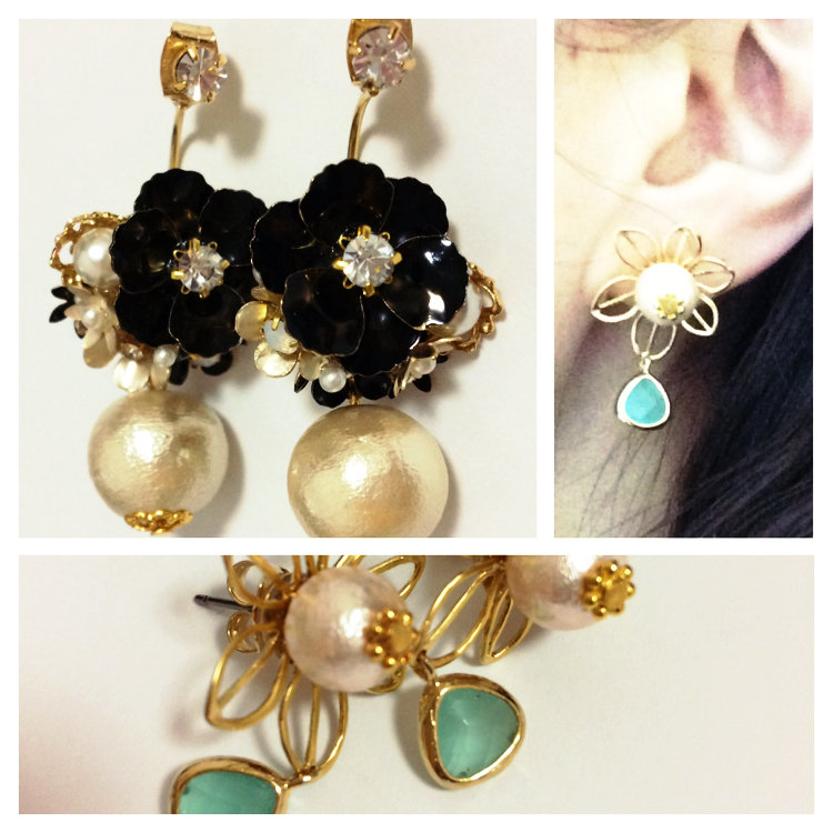 黒いお花見にコットンパールのピアスはプレゼントして貰いました。
