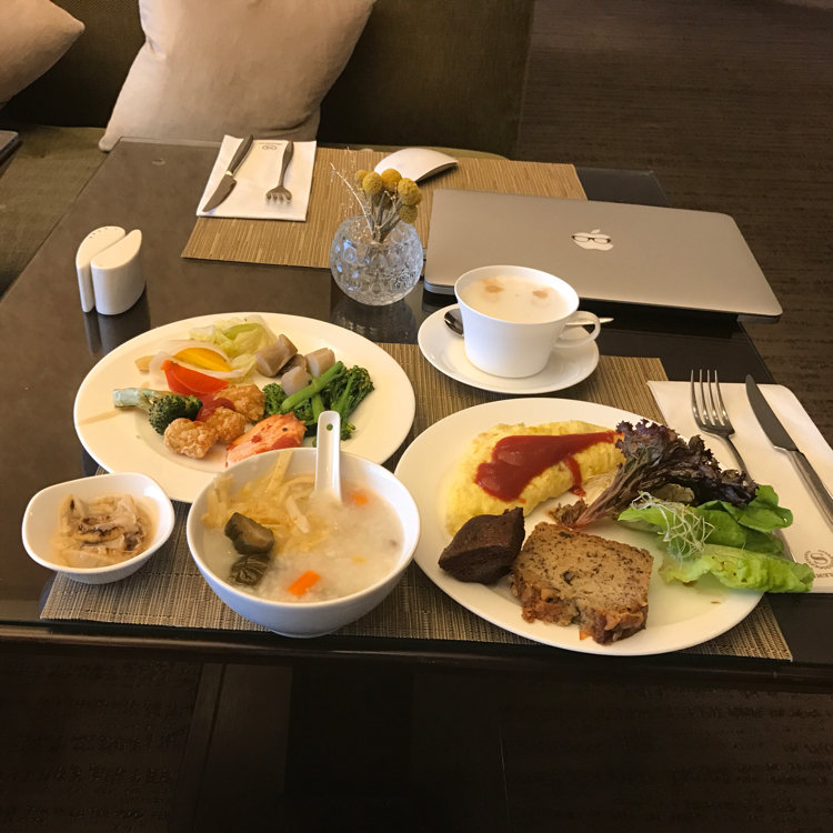 台北シェラトンホテルの17階クラブラウンジの朝食です。食い過ぎです。ご馳走様でした。