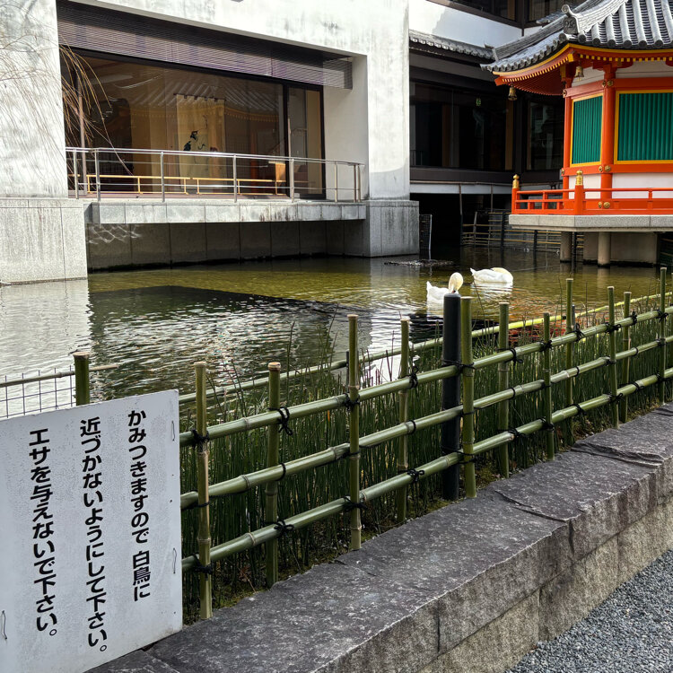 六角堂 お地蔵さま 五円のお守りを手に挟んで、 お願いごとをしました!! 友人に渡すのものも、その人の 願いが叶うようにと願いをしました!! 白鳥が二羽いたけど、忙しそうで こちらを向いてもらえず( ͡° ͜ʖ ͡°) #開運旅 #六角堂 #お地蔵様 #願い事 #白鳥