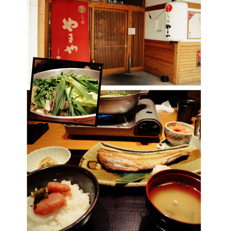 #やまや #福岡県 #博多 #歩く #春の電車旅 #ランチ #行列 #お腹はちきれる #早く着いたのだから待っとけばよかった #ドジ #モツがプリプリ #明太子食べ放題 #塩分過多