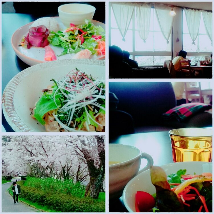 小学校の教室で あたたかい陽射しと桜に見守られながら美味しいローストビーフとリゾット😋😋 満足満腹\( ˆoˆ )/ #廃校#ランチ#カフェ#遠回り#桜#デート#息子とね