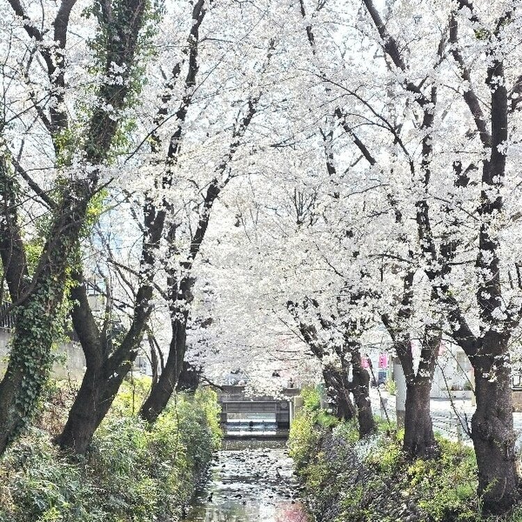 満開の東川(あずまがわ)の桜並木①🌸 およそ5.4キロの桜が彩る小道です。 航空記念公園寄りの、国登録有形文化財の旭橋からスタート。昨年、青銅製のレトロな六角形電灯が80年ぶりに復元されました。夜はほんのりと橋を照らし、いにしえの空気を醸します。 道沿いの桜はサクラタウン方面まで続いています。川幅は少しずつ広がり、桜の木も大きくなっていきます😄 #東川桜通り #東川の桜並木 #桜 #花見